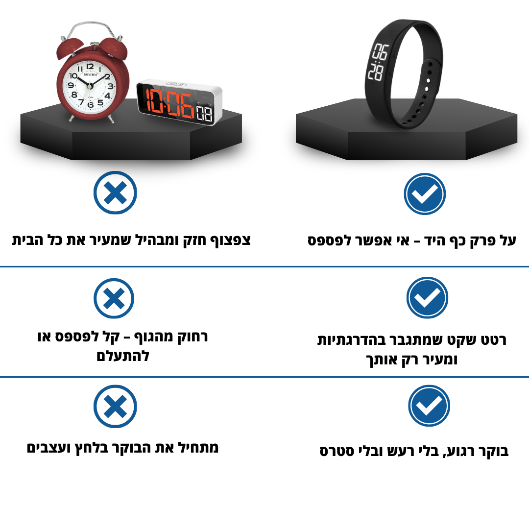 רטט שקט על היד, בלי צפצופים ובלי להעיר את כל הבית.