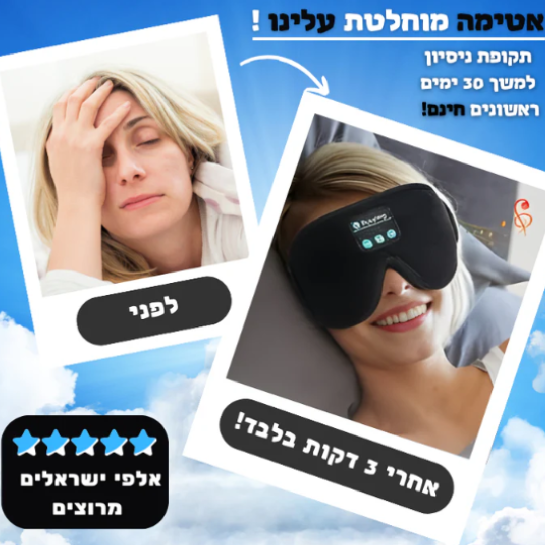 במקום לנסות עוד כרית יקרה, כדורי שינה עם תופעות לוואי, או מסכות שינה פשוטות שחוסמות רק אור - אנחנו מביאים שילוב חכם של נוחות פיזית עם טכנולוגית בלוטות' מתקדמת.